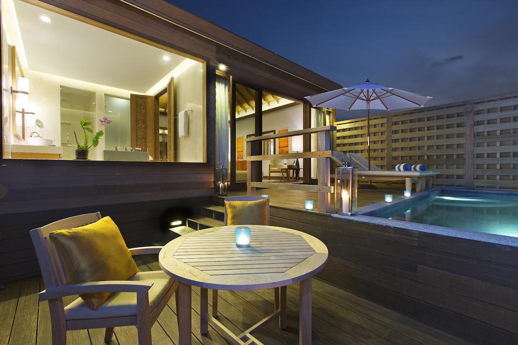 They are broadly similar, too, in layout in size, to the superior overwater bungalows, also having that lovely plunge pool, but this time overlooking the Indian Ocean.