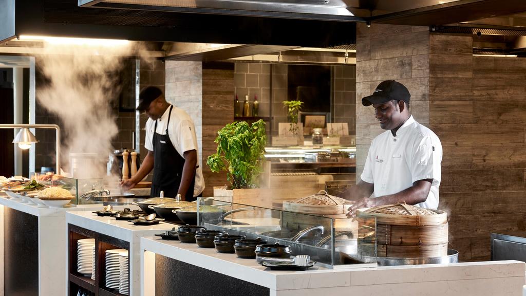 All-inclusive meal packages are available at Marriott Momi Bay, with dining and drinking choices that include Lagoon House which has lovely views over the lagoon and offers mainly Italian cuisine – pizzas, pasta, salads, etc.