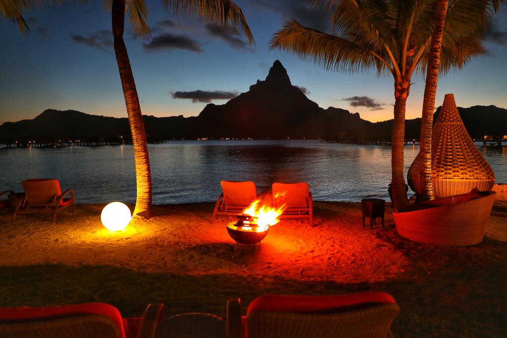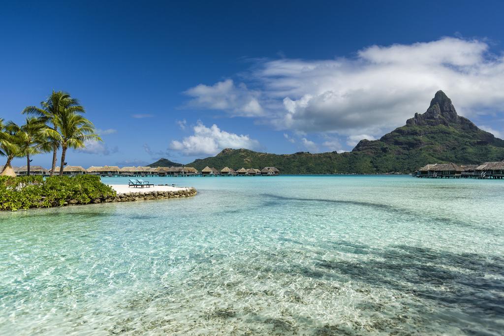It is located on its own private island, a 20-minute boat ride from Bora Bora Motu Mute Airport, and it is hard to overemphasize the extraordinary setting, with the craggy peak of Mount Otemanu towering above and the most beautifully clear turquoise waters you could imagine swaying gently all around.