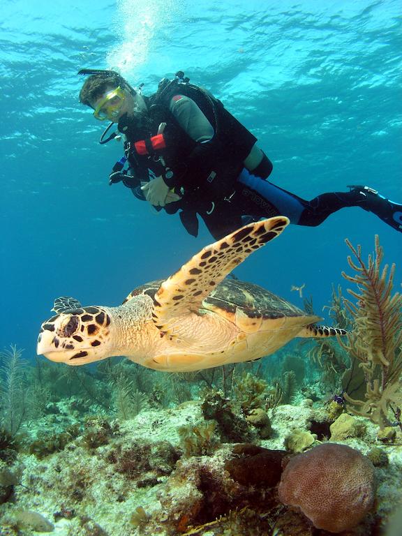 You can snorkel just offshore – snorkel gear as well as paddle boards Hobie cats etc. are all free to use, and you are entitled to one free scuba diving session.