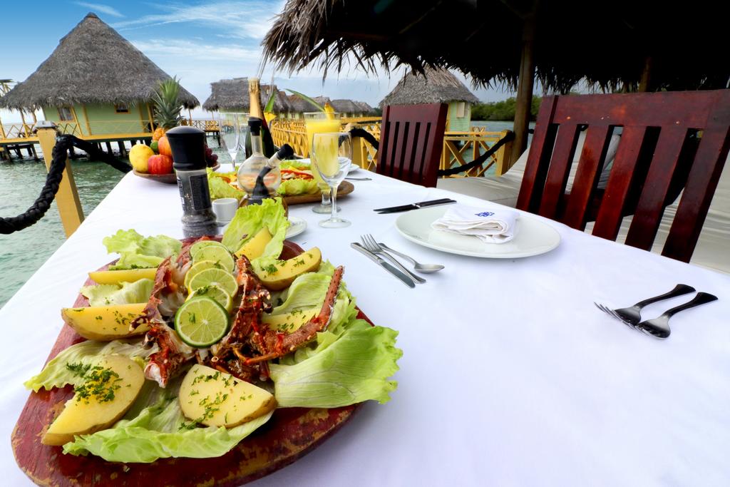The Punta Caracol’s restaurant/bar serves excellent Caribbean and international food, from breakfast to lavish evening meals, and also a good choice of drinks. It is a relaxed friendly place with a large terrace and lovely views over the water.