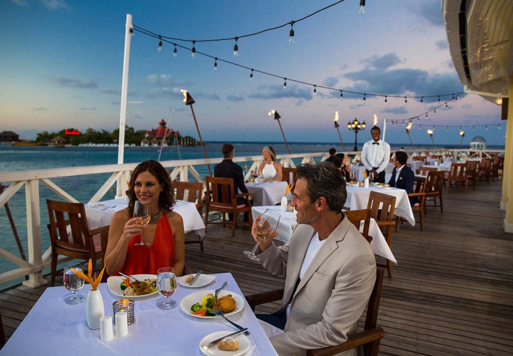 We found a great choice of food and drink outlets at Sandals Royal from casual eateries and lively bars to elegant fine dining restaurants, serving French, Thai, Caribbean seafood, and international cuisine.