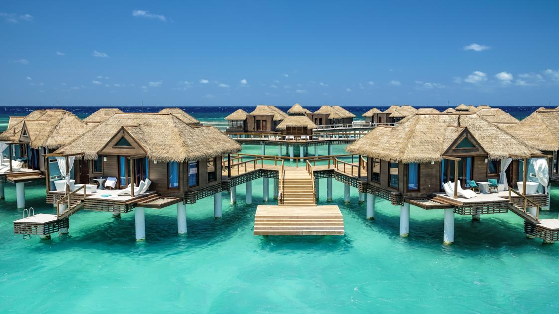 The couples-only Sandals Royal Caribbean, near Montego Bay and just minutes from Sangster International Airport, was the very first overwater bungalow resort in Jamaica and indeed the first overwater bungalows in the Caribbean.