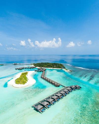 The 5-star, adults-only Anantara Veli Resort has 67 chic overwaters in a sublime setting just half an hour by speedboat from Mali’s International Airport.