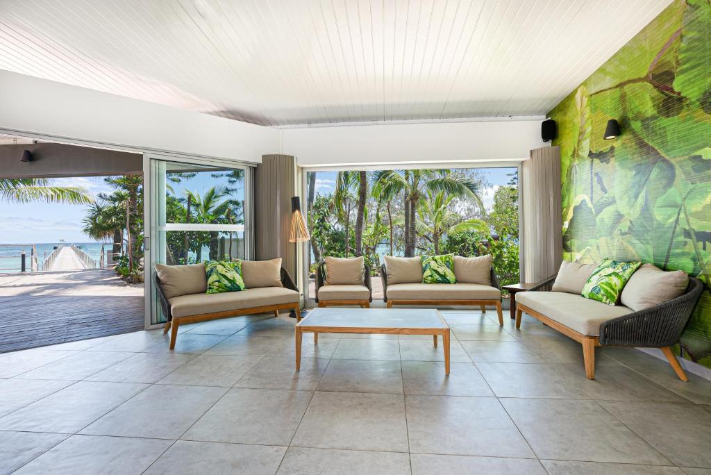 Located southwest of the mainland on its own private island, Ilot Maitre, Double Tree by Hilton Noumea Ilot Maitre Resort is only accessed by water taxi (20 minutes) from Anse Vata.