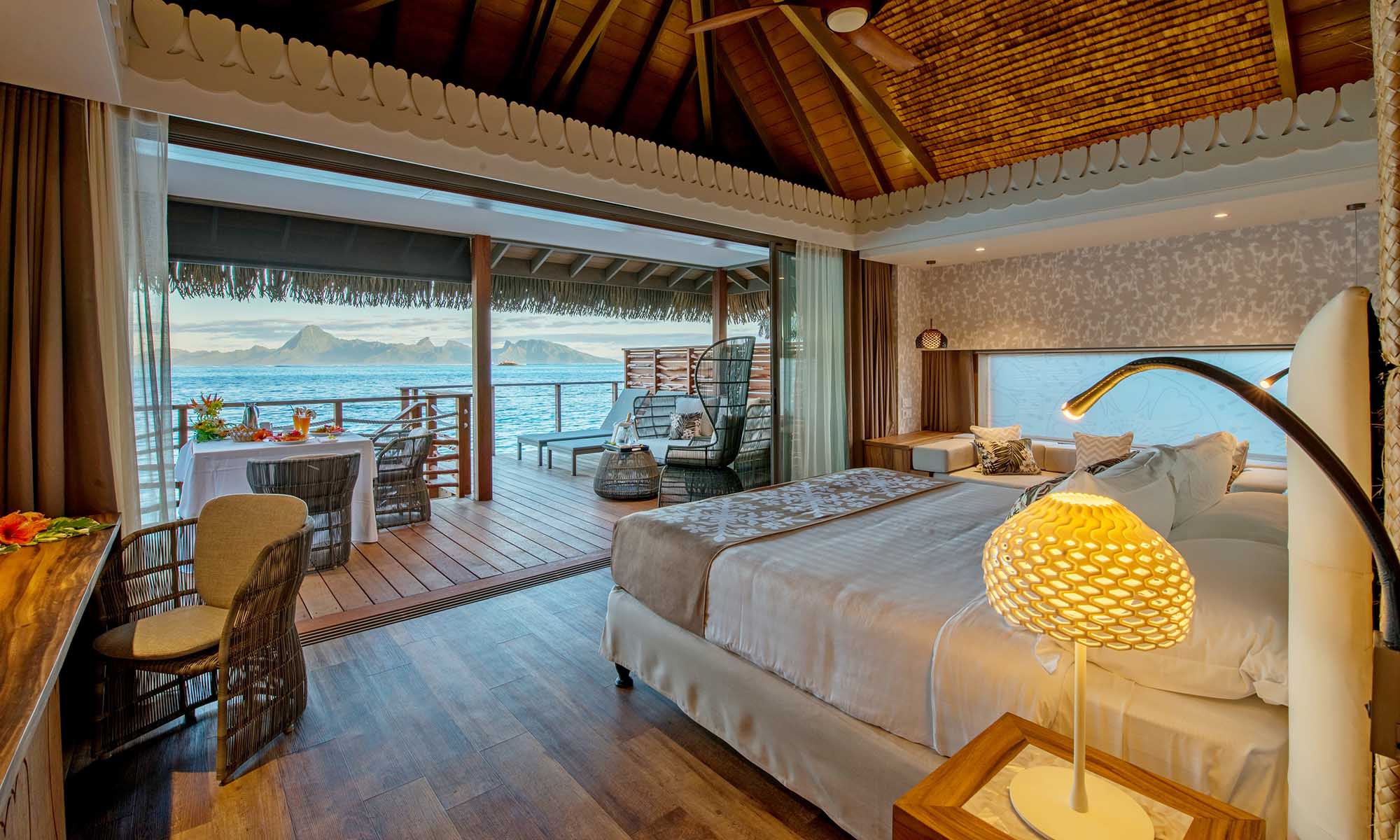 They have a range of accommodations at the Intercontinental, mainly rooms at the main hotel building which come in various sizes and have balconies with garden and sea views, but also overwater bungalows with outdoor terraces and lovely views of Moorea Island just across the water.