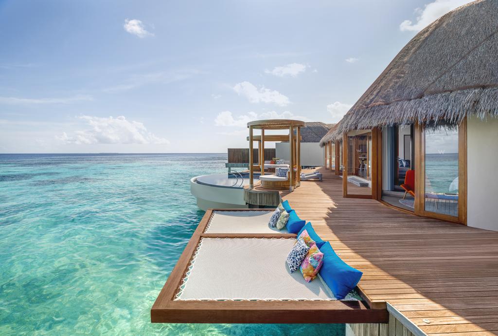 W Maldives is a sophisticated 5-star, private (heart-shaped!) island overwater bungalow resort with cutting-edge design and facilities.