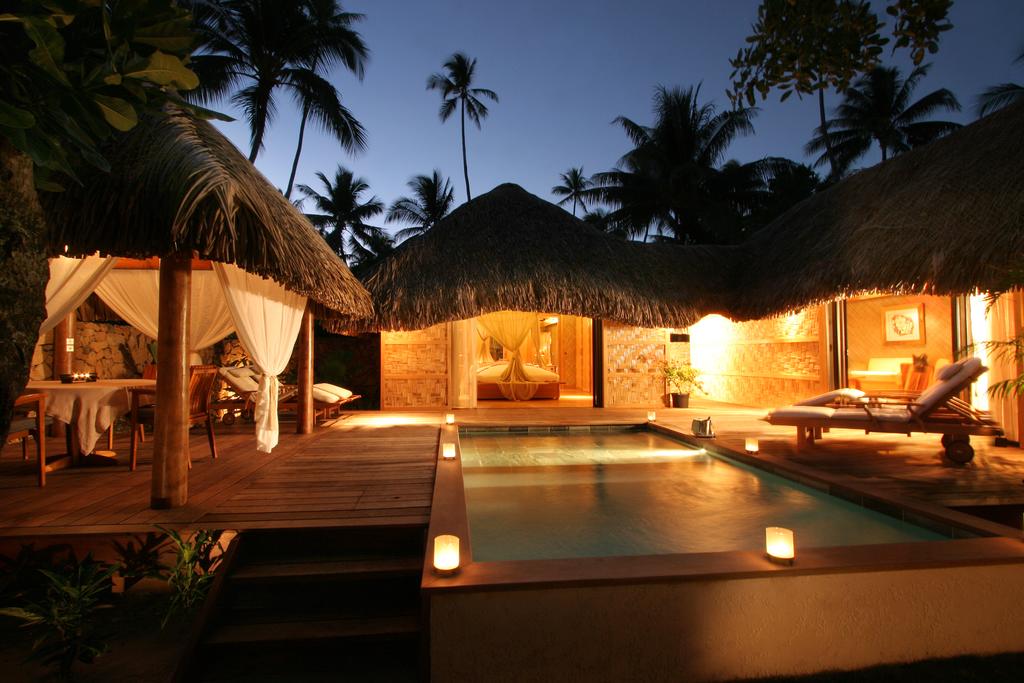 The closest airport is on the neighboring island of Raiatea, reachable by daily flights (45 minutes) from Tahiti International. From there it is a half an hour by private boat transfer to the resort.