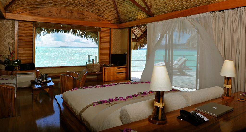 The overwater bungalows are all 969 square feet/90 square meters, in size and broadly similar but priced slightly differently according to the view they offer, with a view of the iconic Mount Otemanu being the most expensive.