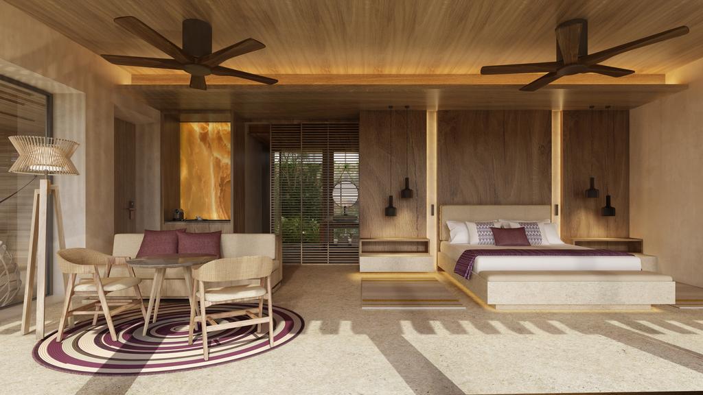 The decor and furniture are generally of wood or other organic materials and the many native Yucatan potted plants add an extra earthy, jungly vibe.