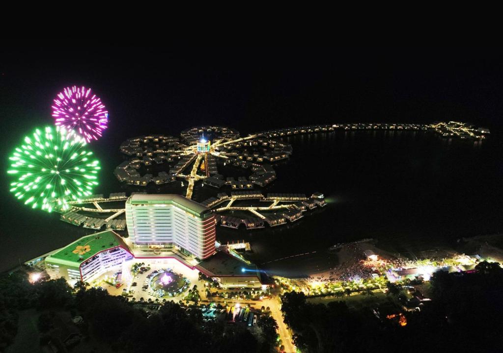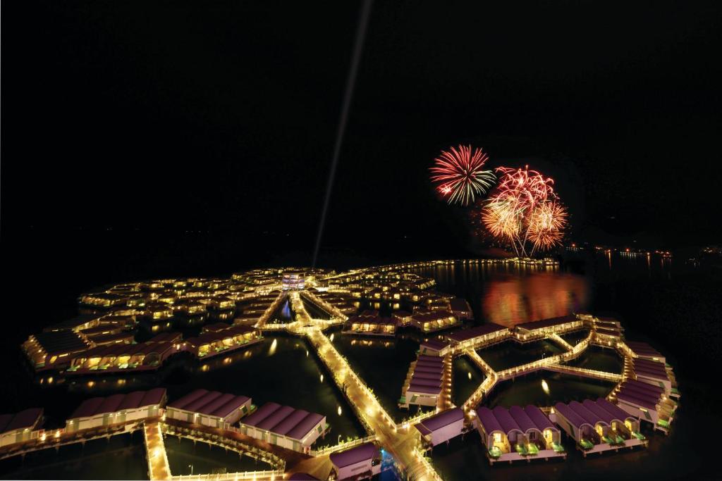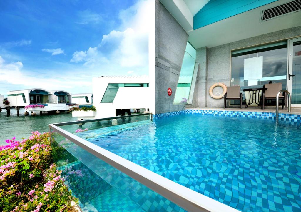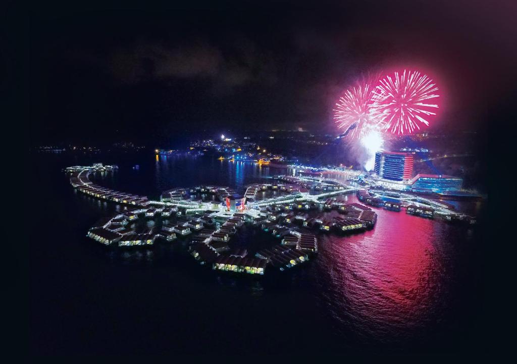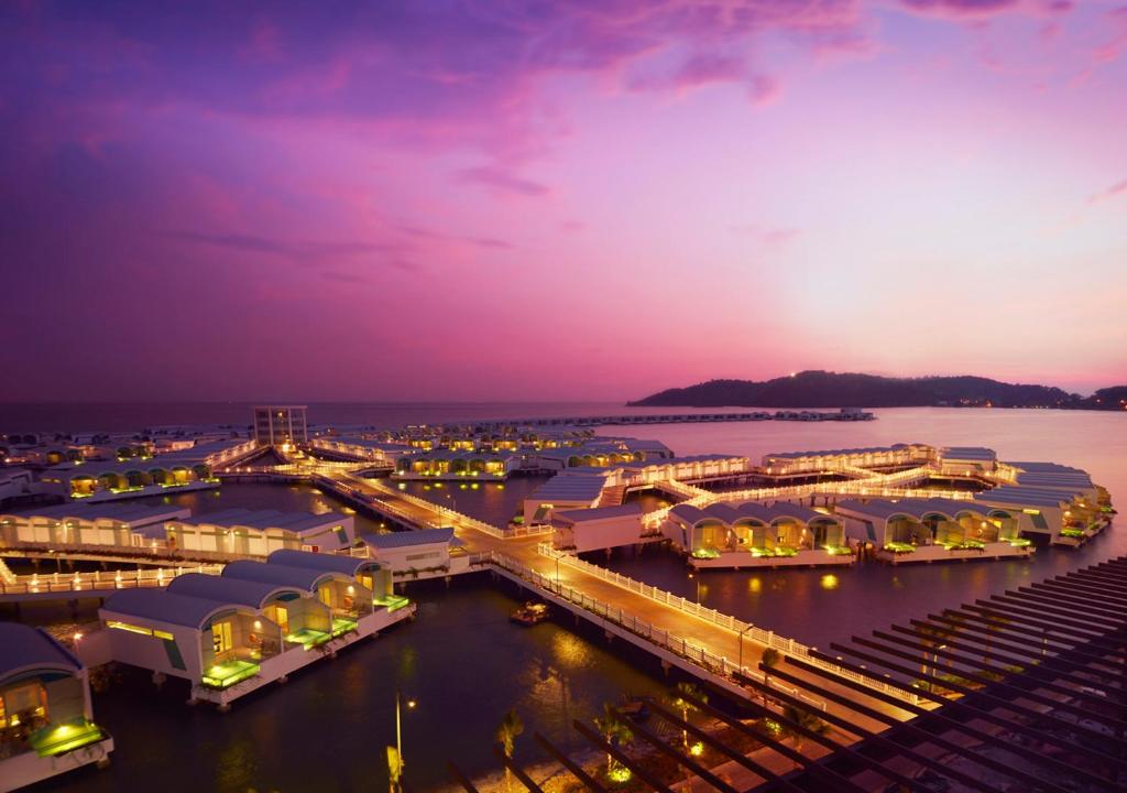 There are an astonishing 522 overwater of them stretching out nearly a mile into the Strait of Malacca in the shape of a hibiscus flower. On land too there are a further one hundred-plus guest villas.