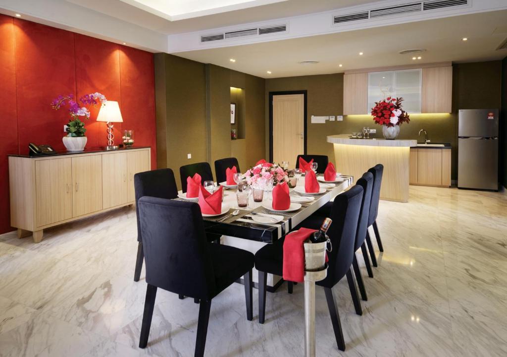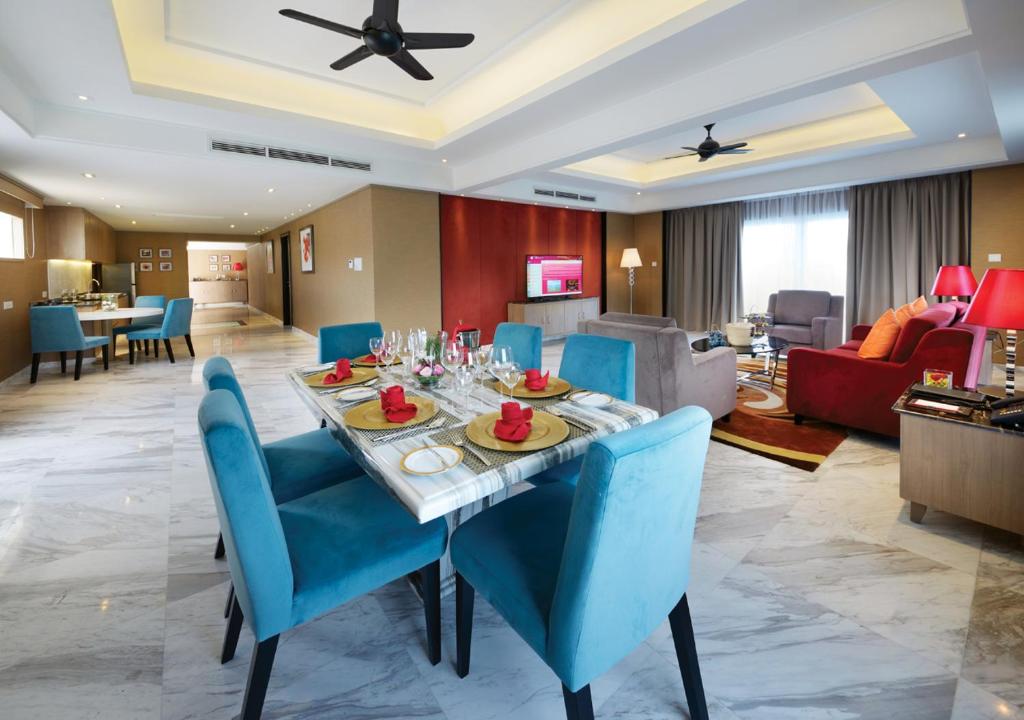 It is a four-ensuite bedroom duplex covering a full 4,112 square feet (382 square meters) with an enormous living, and dining area, kitchen, and bar.