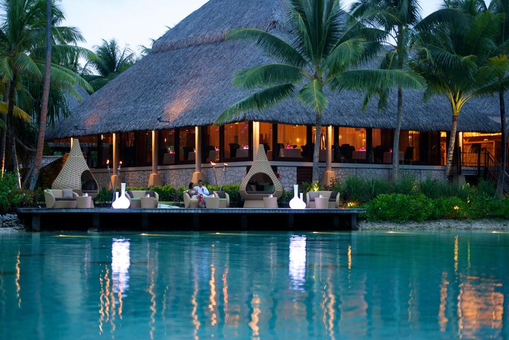 It is located on its own private island, a 20-minute boat ride from Bora Bora Motu Mute Airport, and it is hard to overemphasize the extraordinary setting, with the craggy peak of Mount Otemanu towering above and the most beautifully clear turquoise waters you could imagine swaying gently all around.
