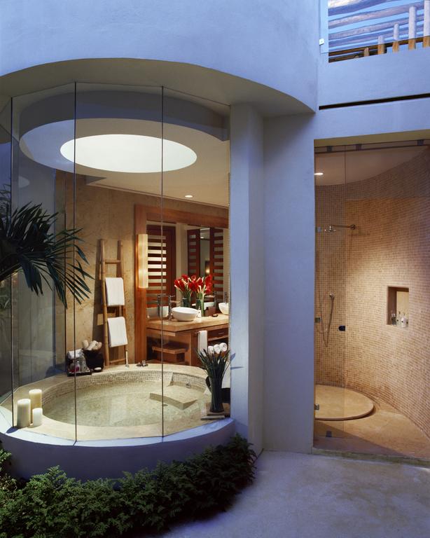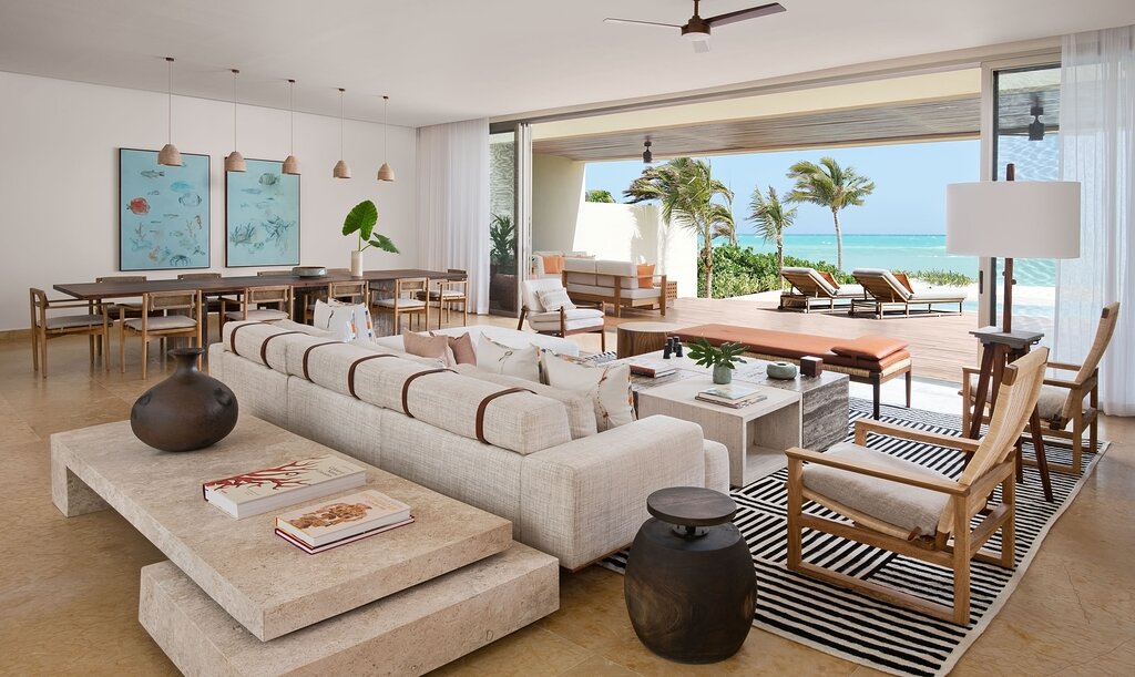 They all have a sleek and classy modern design and a real sense of luxury. Features include private plunge pools, spacious open-plan bathrooms with bathtubs, indoor and outdoor showers, walk-in closets, and a separate lounge area with seating and dining space.