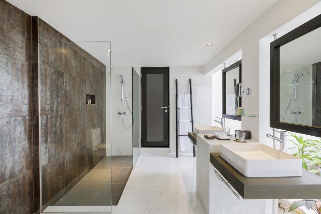 They have an infinity plunge pool outside overlooking the beach and a nice and spacious half-indoor/half-outdoor bathroom with a bathtub.