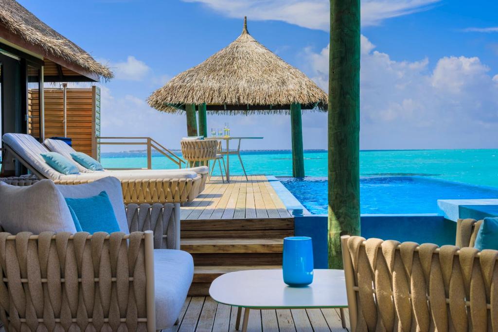 “Stayed in a water with private pool. Service was incredible, the staff could not have been more friendly. I would absolutely go back and recommend to others. We were sad to leave. The only minor negative would be the condition of the room, the furniture was a little worn but I think they are upgrading the rooms currently. On our first day we heard a lot of noise from a room they were upgrading and they immediately moved us to another villa. We then had an excellent surprise of champagne on the beach-such a nice touch and something we will remember for a long time. Also, the food at all the restaurants was delicious….”