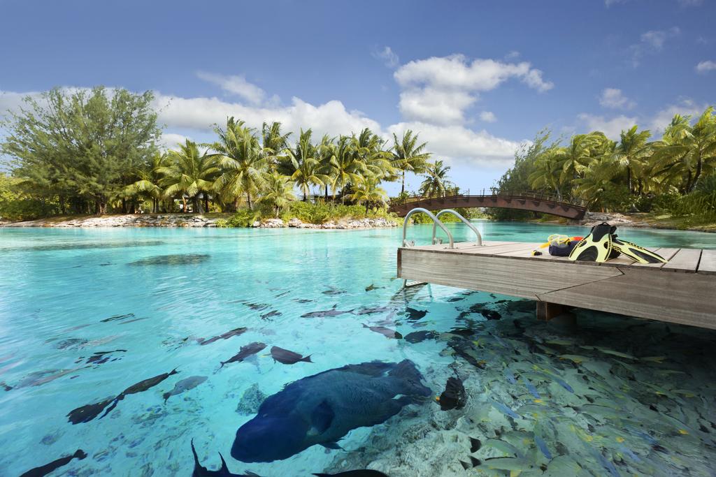 The resort has two swimming pools one of which has a swim-up bar and there is a private lagoon teeming with water life; coral, exotic fish, stingrays, and turtles.